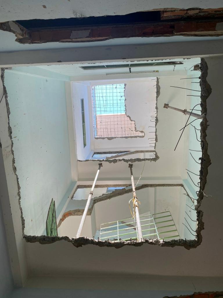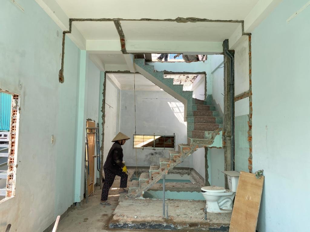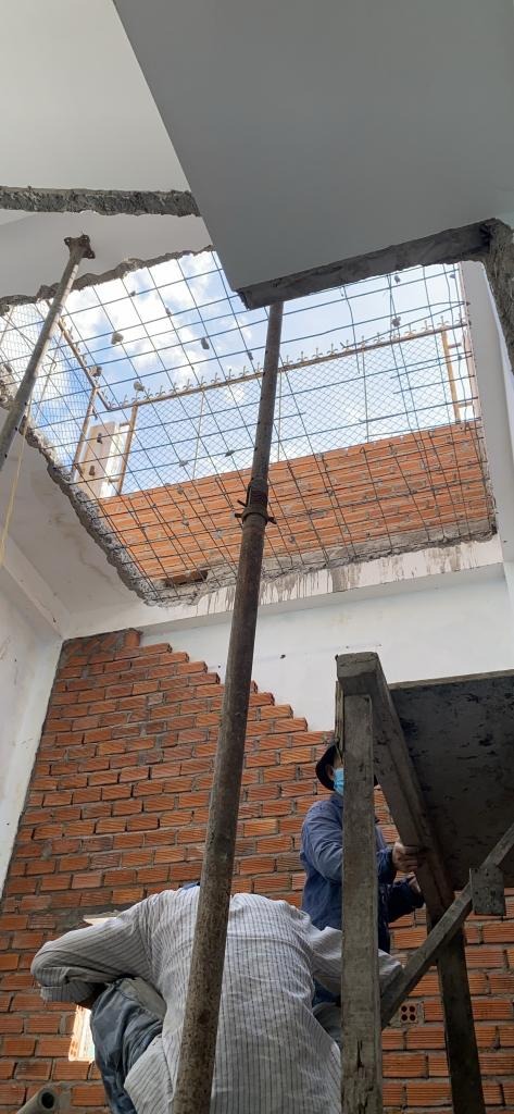 - Cấy thép và đổ bê tông dầm, sàn bịt ô cầu thang cũ.