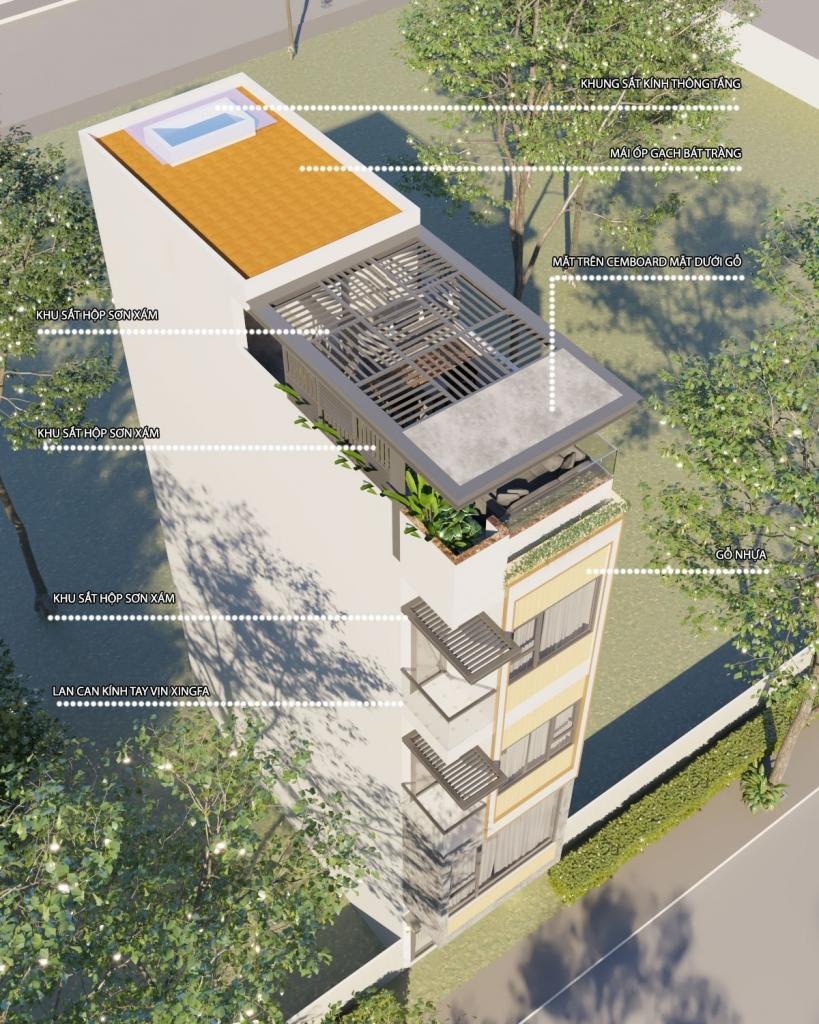 - Cấy thép và đổ sàn ban công để xử lý mặt tiền kiến trúc.