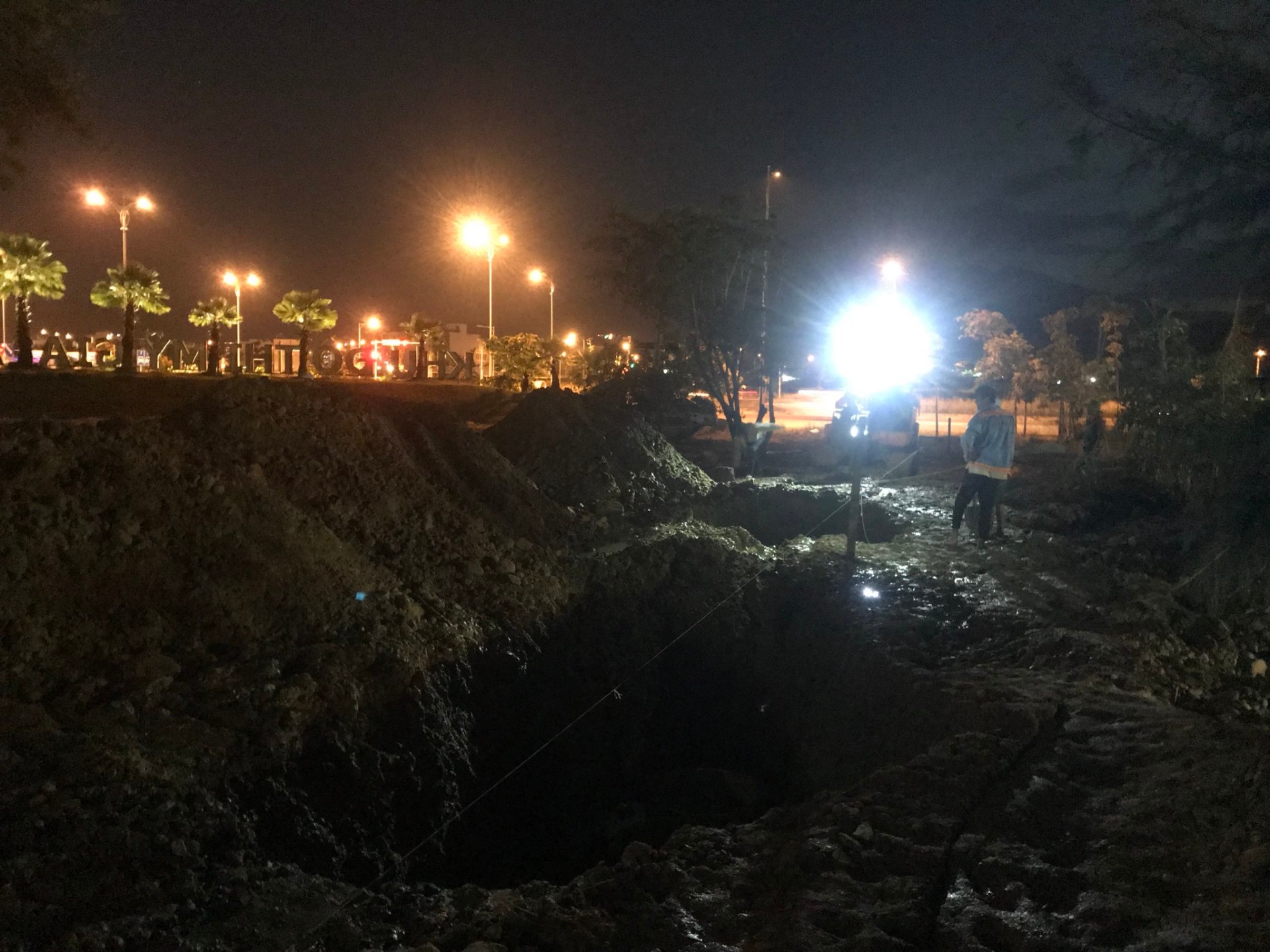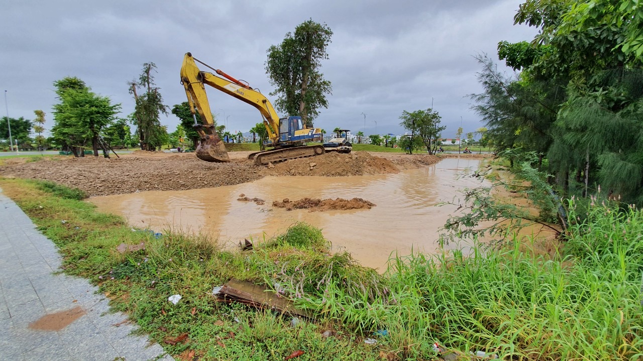 Hình 2. Công tác đào móng, san lấp mặt bằng trong điều kiện trời mưa