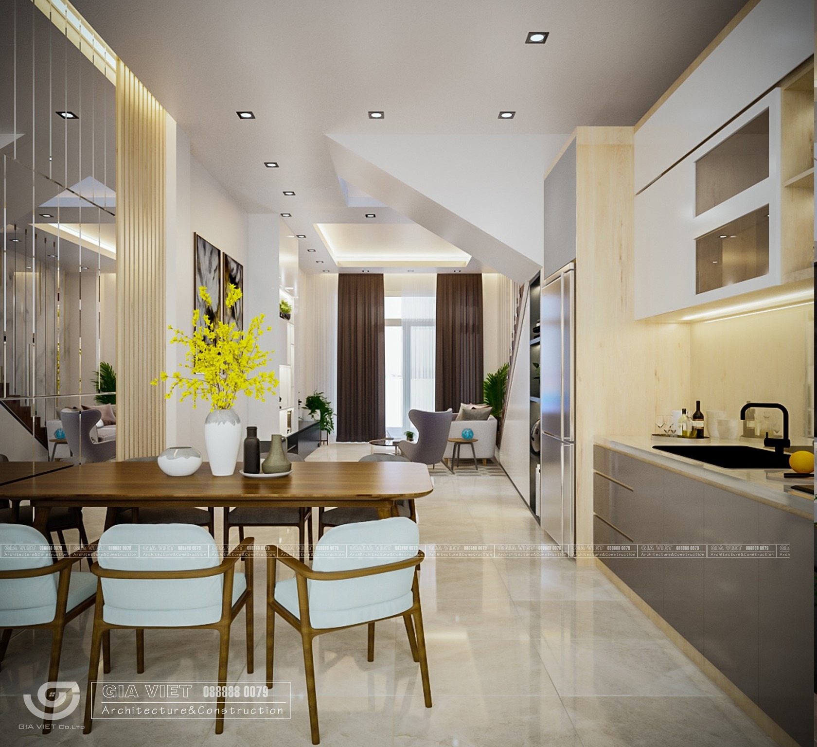 Gia Việt trân trọng giới thiệu đến Quý Khách hàng công trình nhà phố tiêu biểu do Chúng tôi Thiết kế kiến trúc & Nội thất và Thi công xây dựng. Công trình có đặc điểm là bề ngang thay đổi, mặt tiền 3.6m, mặt hậu 4.6m, bề dài xéo 2 cạnh nên việc bố trí mặt bằng rất khó nếu như Đơn vị không có kinh nghiệm xử lý. Tuy nhiên, đội ngũ thiết kế của Gia Việt lại xem khó khăn trên là thử thách thú vị để chinh phục nhằm mang lại giải pháp vừa ý nhất cho gia chủ.