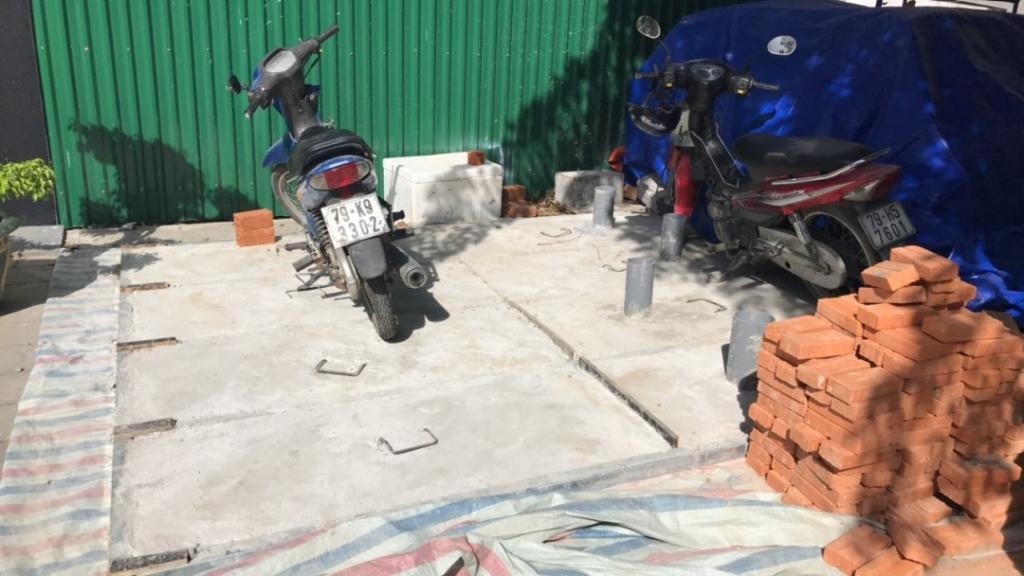 Đổ nắp đan bể bằng Bê tông có đan thép, đặt ống d114 để hút hầm nếu bị đầy hầm